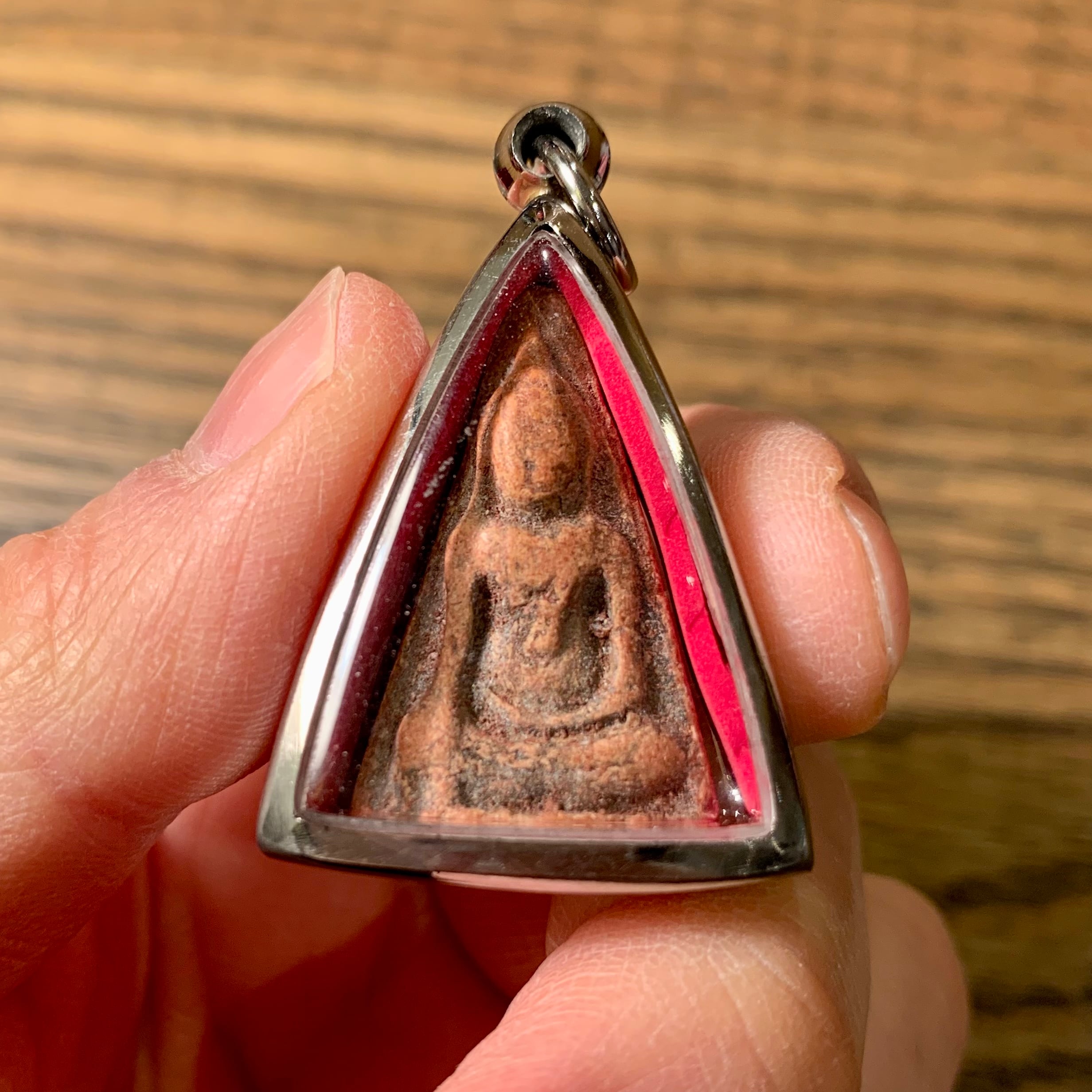 プラ・ナンパヤーは女性が身に着けると良いとされるお守りです。オリジナルはピサノローク県ワット・ナンパヤーのお守りで、ベンジャパーキー(五大タイお守り)の一つに数えられます。こちらの型はオリジナルのもの。ヌア(材質)・ディン(粘土)