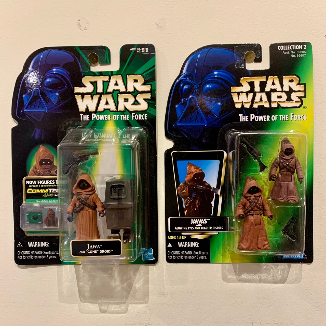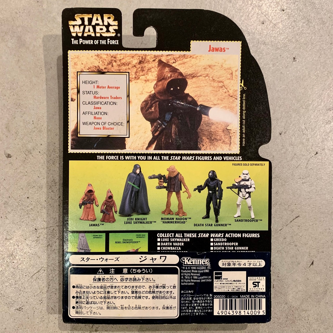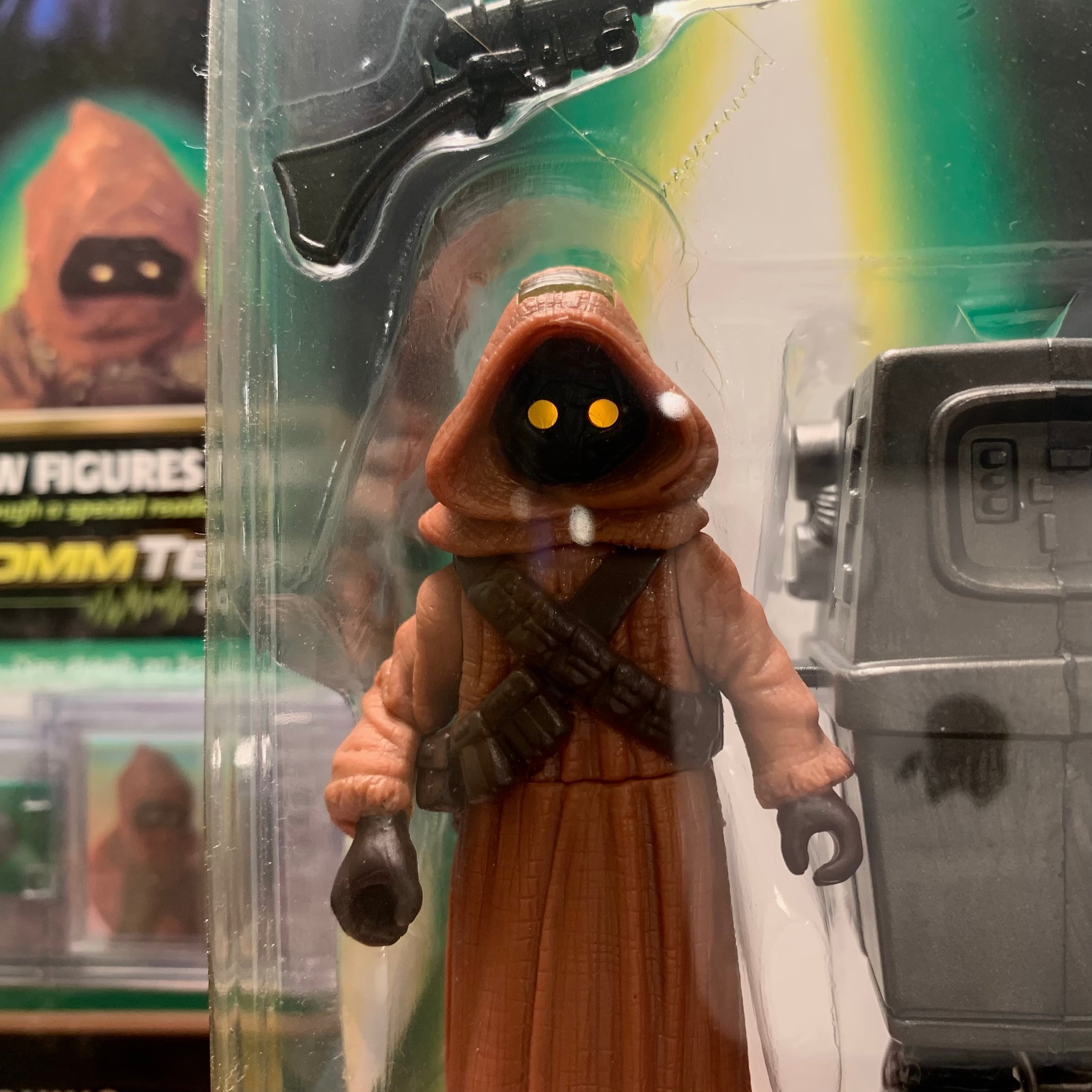 1996年に発売された、「The Power of the Force (POTF)」シリーズのフィギュアで、サイズが若干違うジャワが2体入っています。頭頂部から光を取り入れて目が光るように見えるギミックが採用されています。