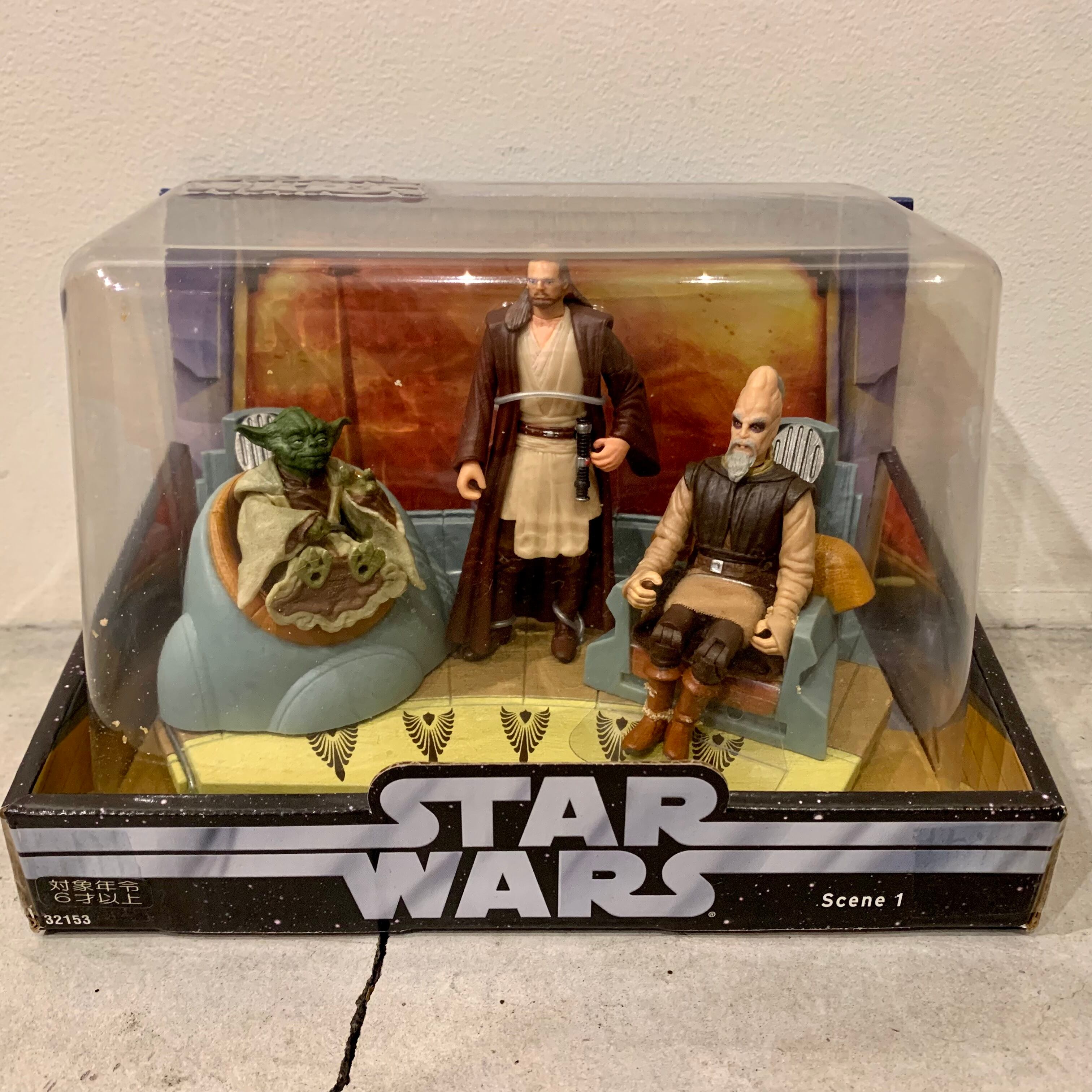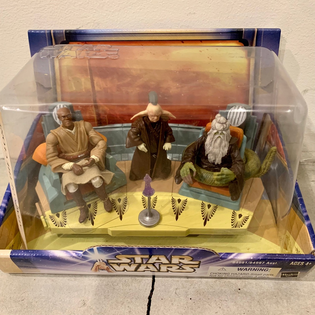 6パック集めてやっと完成するというこちらのセット。「エピソード1/ファントム・メナス」の時のジェダイ最高評議会のシーンを再現しています。当初は2003年に2パックが発売され、間を開けて後の4パックが発売となりました。いまさら「Collect all 6 sets !」と言われても。。というファンの方も多かったのではないでしょうか。ぜひとも開封して飾りたいフィギュアのひとつです。